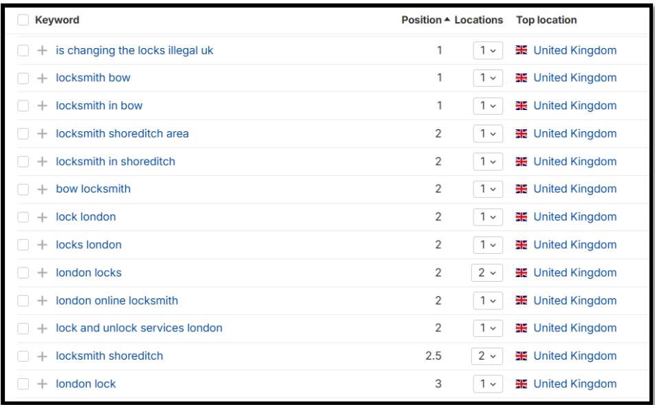 clients wants to rank at least 10 keywords on Google 1st page.